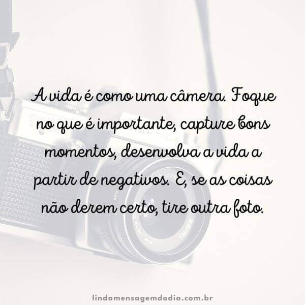 A vida é como uma câmera. Foque no que é importante, capture bons momentos, desenvolva a vida a partir de negativos. E, se as coisas não derem certo, tire outra foto.